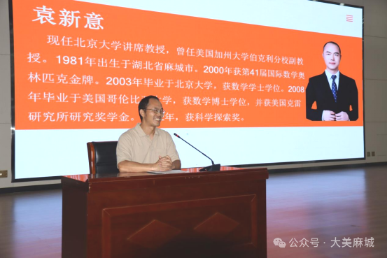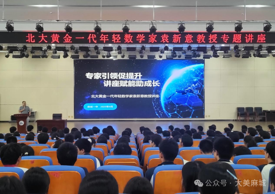 秋阳杲杲,金风送爽。9月29日,麻城一中校园内涌动着一股探究真理、追寻智慧的澎湃热潮。北大数学黄金一代、国际领军的年轻数学家袁新意教授来访麻城一中,为高二学子们带来了一场思想深邃、精彩纷呈的数学专题讲座。活动由麻城一中校长张欢主持,高二年级全体学生及班主任参与讲座,现场座无虚席,气氛热烈。