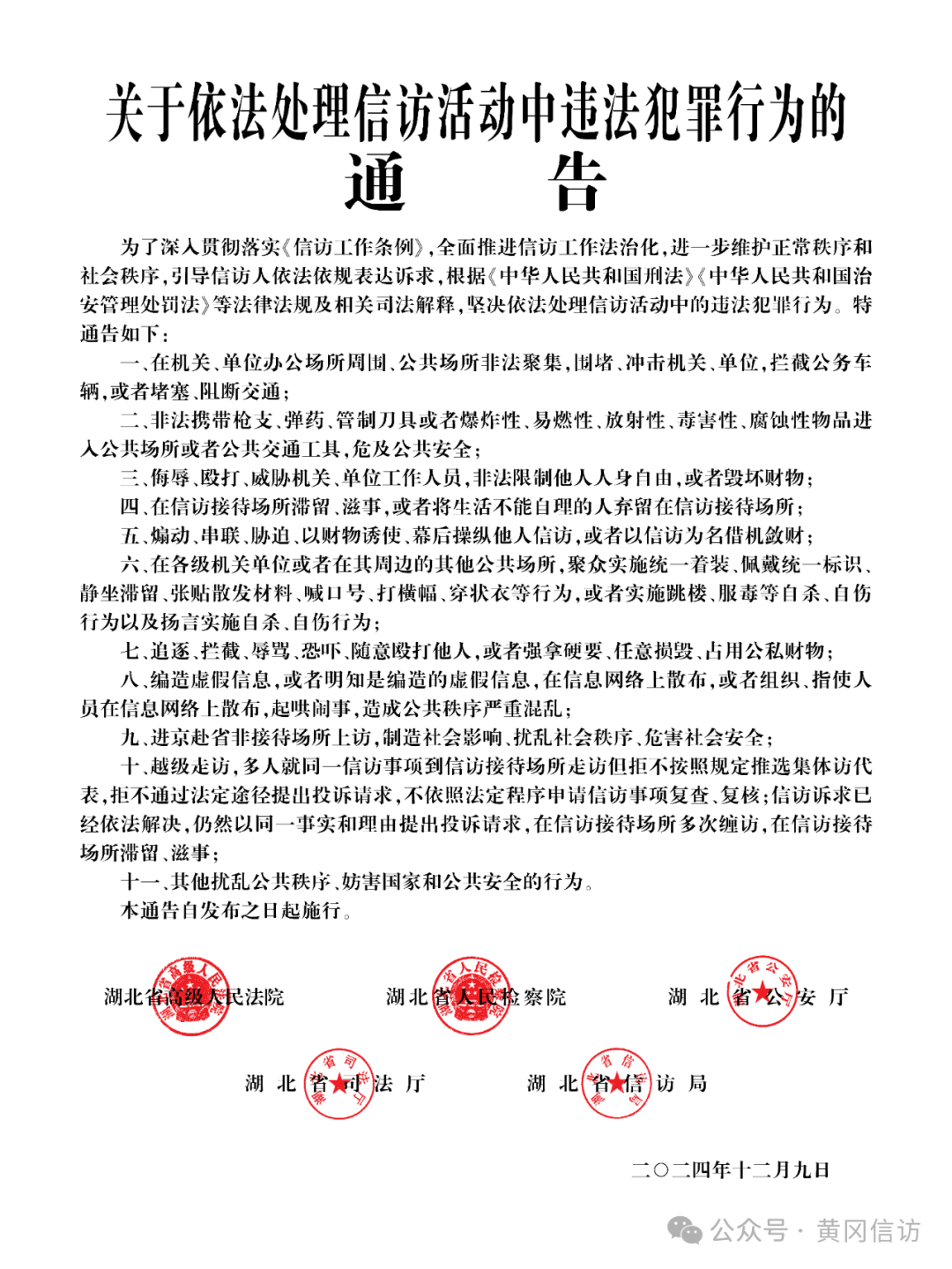 关于依法处理信访活动中违法犯罪行为的通告 ...